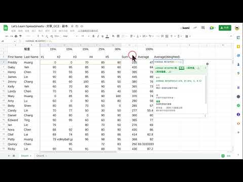 如何在Google試算表簡單用一個函數,就把數值加權後計算平均!- 20230120