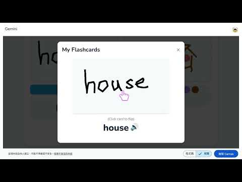 各位好!今天要和大家分享的又是個跟Gemini Canvas(Pro版)協作的小工具!可以讓孩子自己畫自己的英文單字閃卡,並且提供AI筆跡辨識功能以及發音功能喔!
